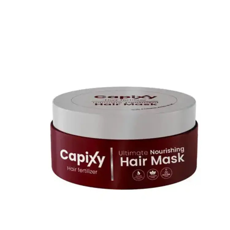Capixy Fertilizer Hair Mask \n هو ماسك غني بالمغذيات الأساسية التي يحتاجها الشعر الضعيف والمتقصف. بفضل تركيبته الفريدة التي تحتوي على البروتينات، الفيتامينات، وزيوت طبيعية مثل زيت الجوجوبا وزيت الخروع، يعمل هذا الماسك على إصلاح الشعر وتحفيز البصيلات لزيادة النمو.