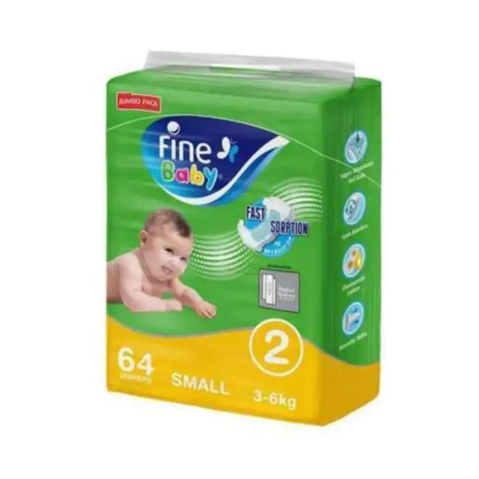 معتمد من الخبراء: الحفاضات الوحيدة للأطفال في العالم التي أوصت بها جمعية العافية الطبية. فاين بيبي هو المنتج الوحيد للأطفال في العالم الذي حصل على جائزة "منتج الأطفال لهذا العام" \nساعد في حماية بشرة طفلك الناعمة: حفاضات فاين بيبي ناعمة ومدعمة بالبابونج للمساعدة في ترطيب بشرة طفلك وحمايتها من طفح الحفاضات \nمعقمة: تخضع كل حفاضات فاين بيبي لعملية ستيري برو الحاصلة على براءة اختراع لضمان أن الحفاضات الأكثر صحة فقط تلمس بشرة طفلك في كل مرة \nتقنية القفل الذكي: ستحافظ تقنية القفل الذكي من فاين بيبي على طفلك حديث الولادة جافًا ومريحًا. ستوفر الجوانب المطاطية للحفاضات الراحة مع كل حركة \nتقنية دبل لوك لحفاضات الأطفال: تمنع تقنية دبل لوك الحاصلة على براءة اختراع من فاين بيبي تسرب الحفاضات، مما يساعد طفلك على البقاء نظيفًا ومنتعشًا طوال اليوم