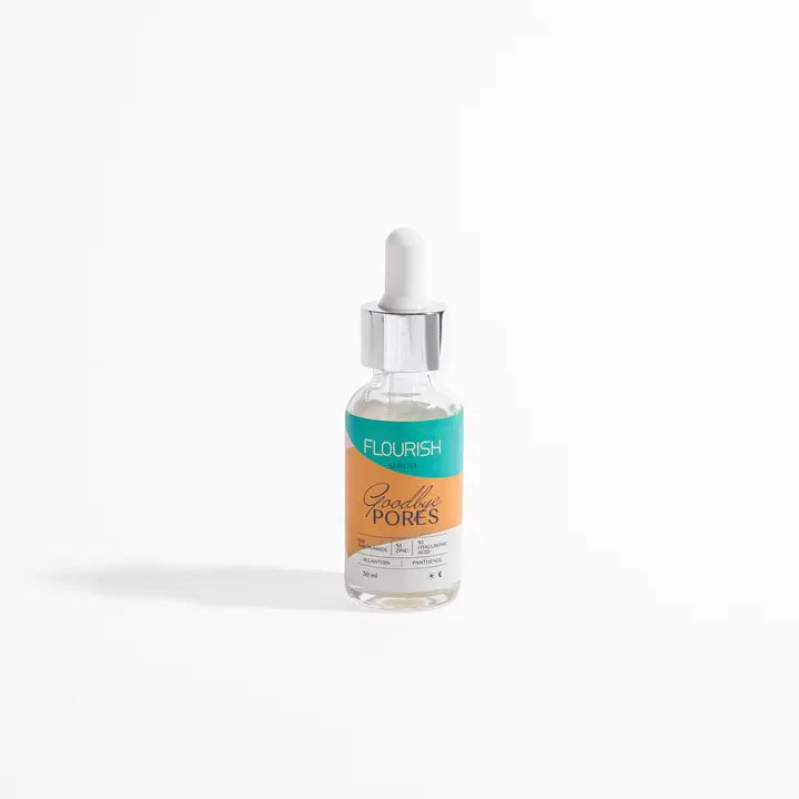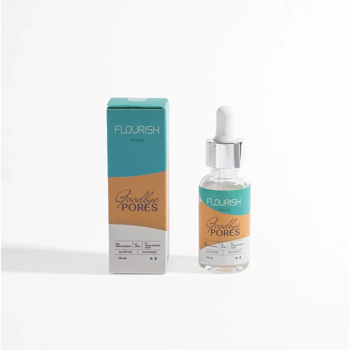 سيروم فلورِش جودباي بورز لتقليص المسام (30 مل): \nسيروم فلورِش جودباي بورز هو الحل المثالي لتقليص المسام وتنقية البشرة. تركيبته الغنية تعتمد على النياسيناميد الذي يساعد على تحسين ملمس البشرة وتقليل الإفرازات الدهنية، مما يقلل من مظهر المسام الواسعة. يحتوي أيضًا على الزنك الذي ينقي البشرة ويحارب الالتهابات، وحمض الهيالورونيك الذي يرطب البشرة بعمق، مما يمنحها مظهراً ممتلئاً وناعماً. يعمل هذا السيروم على توحيد لون البشرة وتعزيز مرونتها، مما يجعلها تبدو أكثر إشراقًا وحيوية. مناسب لجميع أنواع البشرة، خاصة البشرة الدهنية والمعرضة للعيوب.
