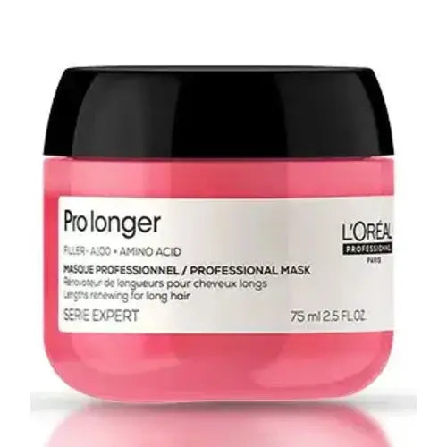 ماسك لوريال بروفيشنال برو لونجر 75 مل: \nماسك برو لونجر من لوريال بروفيشنال هو الحل الأمثل للشعر الطويل الذي يعاني من الأطراف الضعيفة والمتقصفة. يحتوي على مركب فيلر-إيه100 وحمض أميني لتقوية الشعر من الجذور وحتى الأطراف، تقليل التقصف، وتحسين مظهر الأطراف. يمنح الشعر طولًا صحيًا وملمسًا ناعمًا ولامعًا.