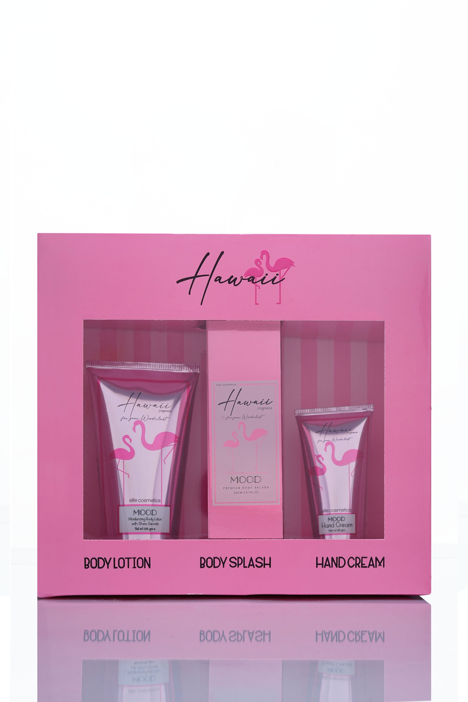 مجموعة مود هاواي النسائية (لوشن للجسم ١٥٠ مل + معطر للجسم ٢٢٠ مل + كريم لليدين ٥٠ جم)، مصممة خصيصاً لتدليل حواسك من الرأس إلى القدمين. تتضمن هذه المجموعة الرائعة ثلاثة منتجات أساسية مصممة لتغذية بشرتكِ وإنعاشها وترطيبها، لتمنحكِ شعوراً بالانتعاش ورائحة زكية. تحتوي مجموعة مود هاواي النسائية على:
