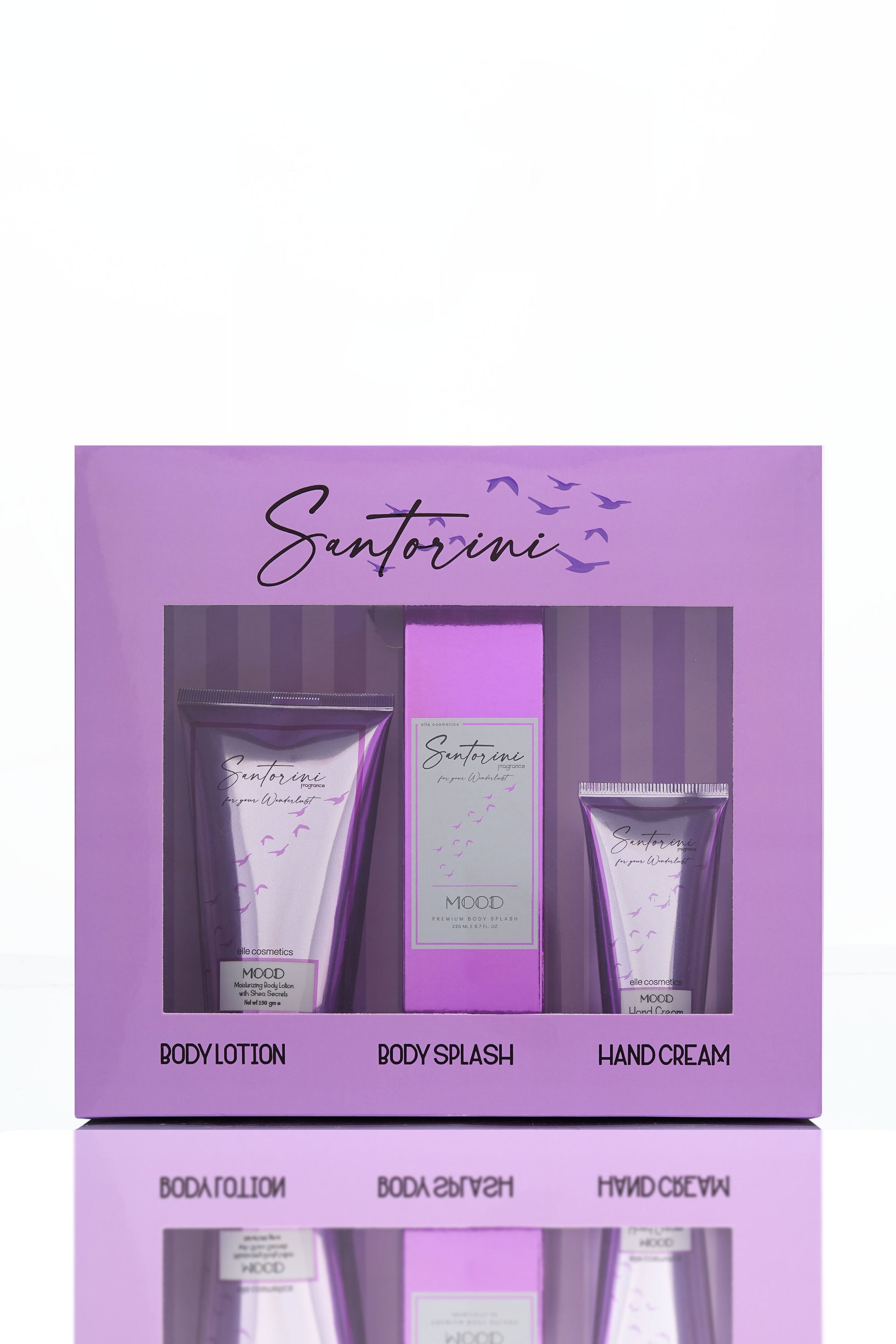 مجموعة مود سانتوريني النسائية (لوشن للجسم ١٥٠ مل + معطر للجسم ٢٢٠ مل + كريم لليدين ٥٠ جم)، مصممة خصيصاً لتدليل حواسك من الرأس إلى القدمين. تتضمن هذه المجموعة الرائعة ثلاثة منتجات أساسية مصممة لتغذية بشرتكِ وإنعاشها وترطيبها، لتمنحكِ شعوراً بالانتعاش ورائحة زكية. تحتوي مجموعة مود سانتوريني النسائية على: