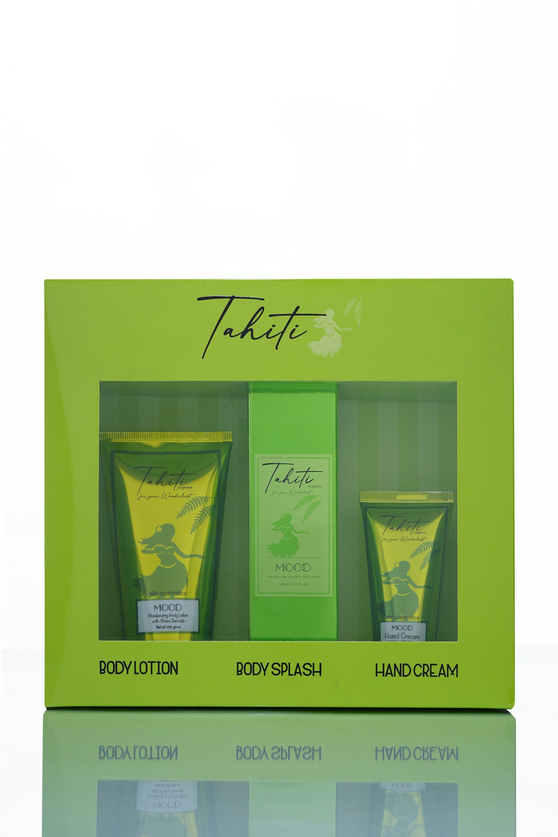 مجموعة مود تاهيتي النسائية (لوشن للجسم ١٥٠ مل + معطر للجسم ٢٢٠ مل + كريم لليدين ٥٠ جم)، مصممة خصيصاً لتدليل حواسك من الرأس إلى القدمين. تتضمن هذه المجموعة الرائعة ثلاثة منتجات أساسية مصممة لتغذية بشرتكِ وإنعاشها وترطيبها، لتمنحكِ شعوراً بالانتعاش ورائحة زكية. تحتوي مجموعة مود تاهيتي النسائية على: