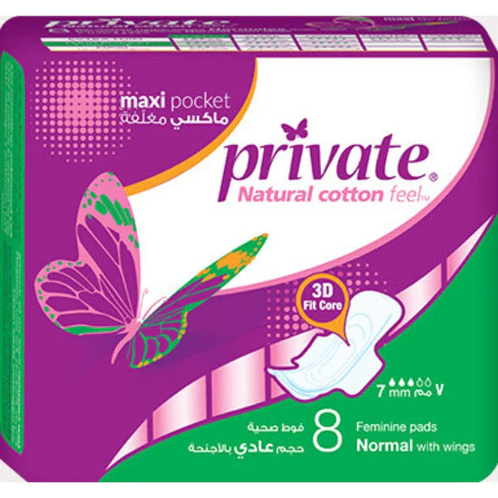 فوط برايفت ماكسي بوكيت العادية – 7 مم – 8 قطع | حماية يومية متكاملة \n✨ احصلي على راحة فائقة مع فوط برايفت ماكسي بوكيت العادية، المصممة بتقنية لامتصاص فائق وحماية تدوم طوال اليوم \n✅ تصميم نحيف لحرية الحركة | ✅ حماية قوية ضد التسرب | ✅ مثالية للاستخدام اليومي