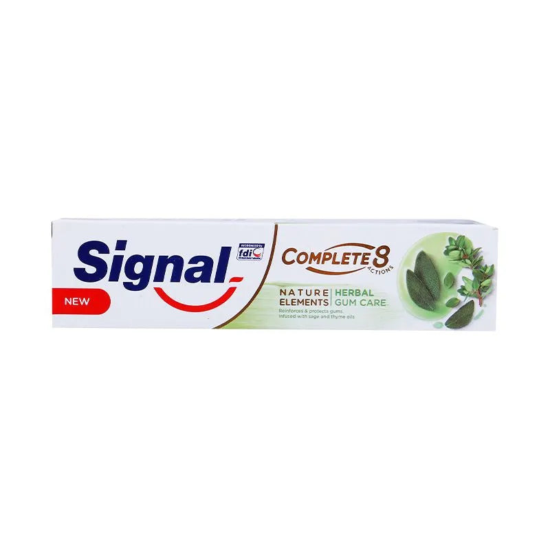 معجون أسنان سيجنال كومبليت 8 هيربال يوفر حماية متكاملة لصحة الفم مع تركيبة غنية بمزيج من الأعشاب الطبيعية. يساعد في تنظيف الأسنان بعمق وإنعاش النفس مع تعزيز صحة اللثة.