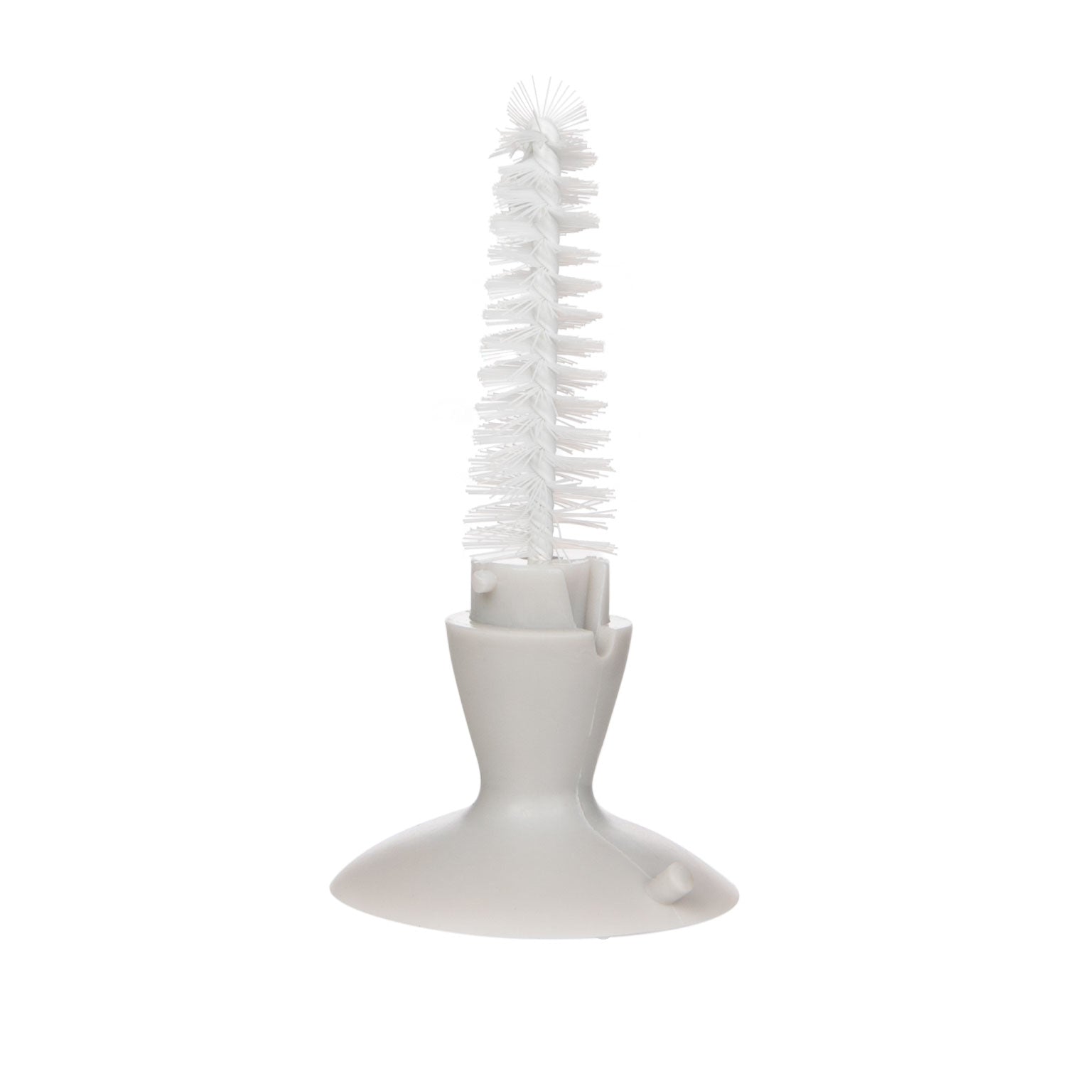 The practical brush makes cleaning bottles and teats easy and convenient. The larger brush features a sponge that allows thorough cleaning of the bottom of bottles. The smaller brush, hidden at the end of the suction cup, is perfect for cleaning milk or cereal residues from the teat. The brush has a special suction cup that ensures stable positioning on smooth surfaces for easy use.