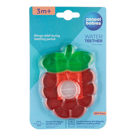 Water Teether FRUITS soothes pain during teething, when baby's gums are itchy and the need for chewing is strong. Made of soft, flexible material that adapts to child's mouth. A variety of shapes and colors stimulate baby's visual-motor coordination. The Teether is light and handy which facilitates holding in little hands. Deigned for children ages 3m+. Cool the teether in a refrigerator before offering it to the baby.