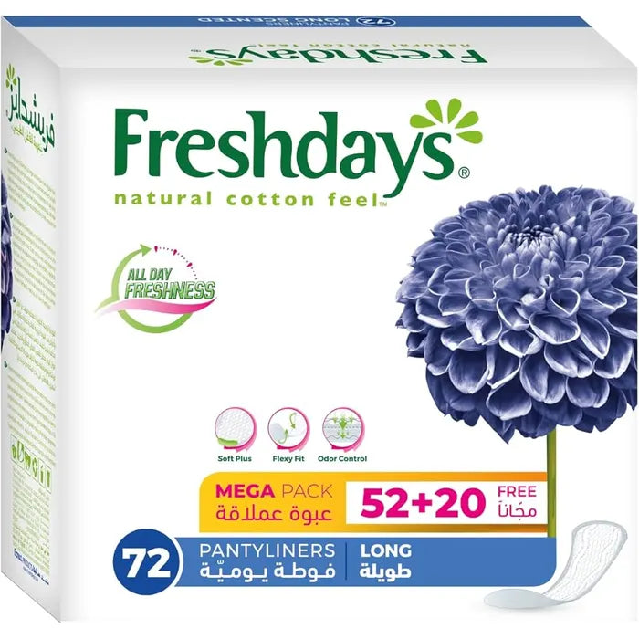 تمنحك شعورًا بالانتعاش طوال اليوم \nتصميم محسّن لامتصاص مركزي أقصى وحماية كاملة \nغطاء علوي من القطن الطبيعي للحصول على نعومة مثالية \nطبقة داخلية إضافية لقوة أعلى وتوزيع متساوٍ للسوائل \nالتحكم في الرائحة \nامتصاص عالي للدم أثناء الدورة الشهرية \nلا يسبب التهابًا مهبليًا